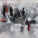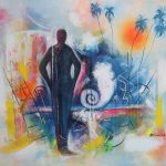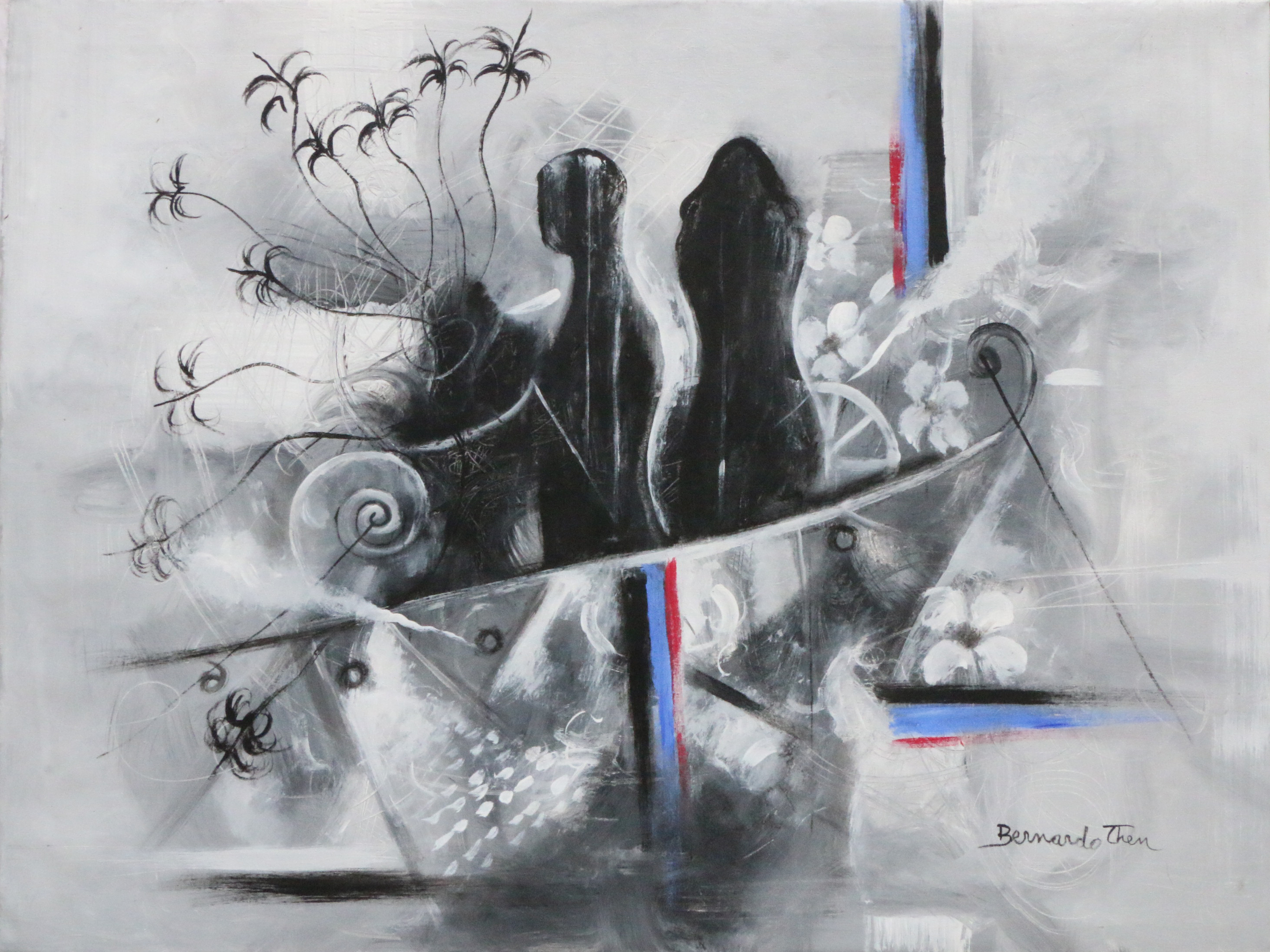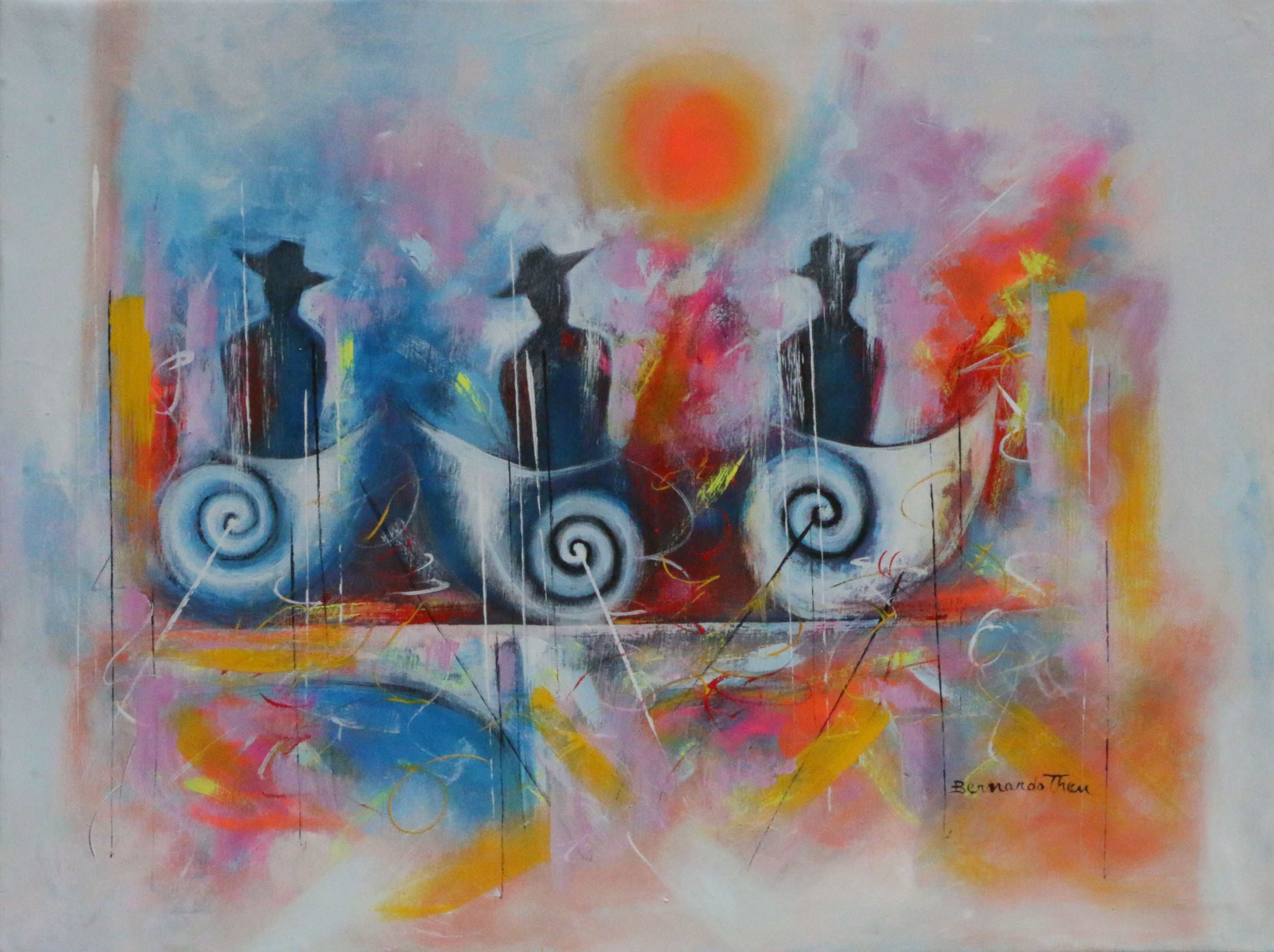 | Bernardo Then Untitled Viajeros del tiempo 2019 Acrylic on canvas 30x40 in Signed LR |