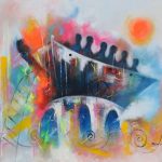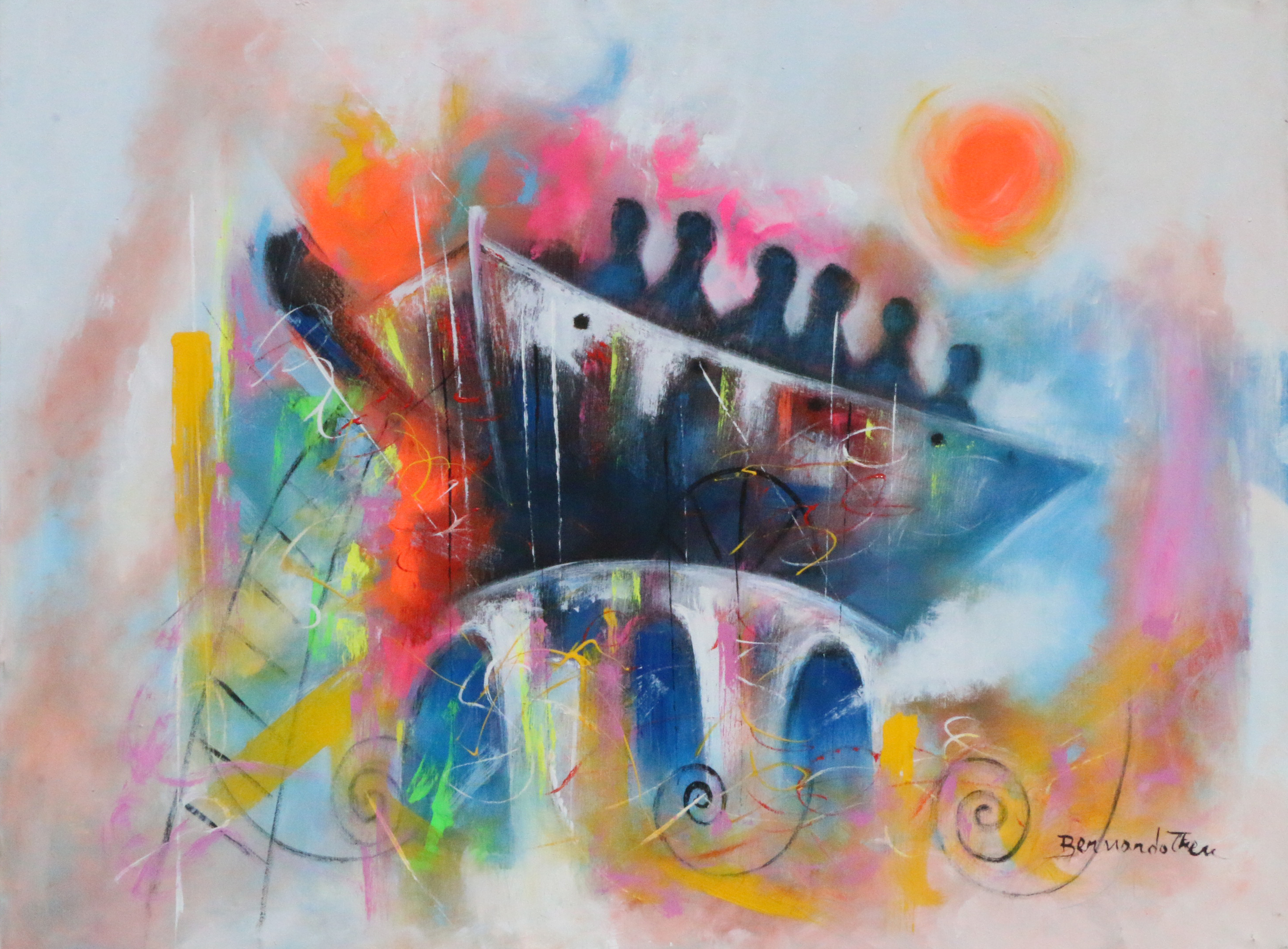 | Bernardo Then Untitled Viajeros simbolos del tiempo 2019 Acrylic on canvas 30x40 in Signed LR |
