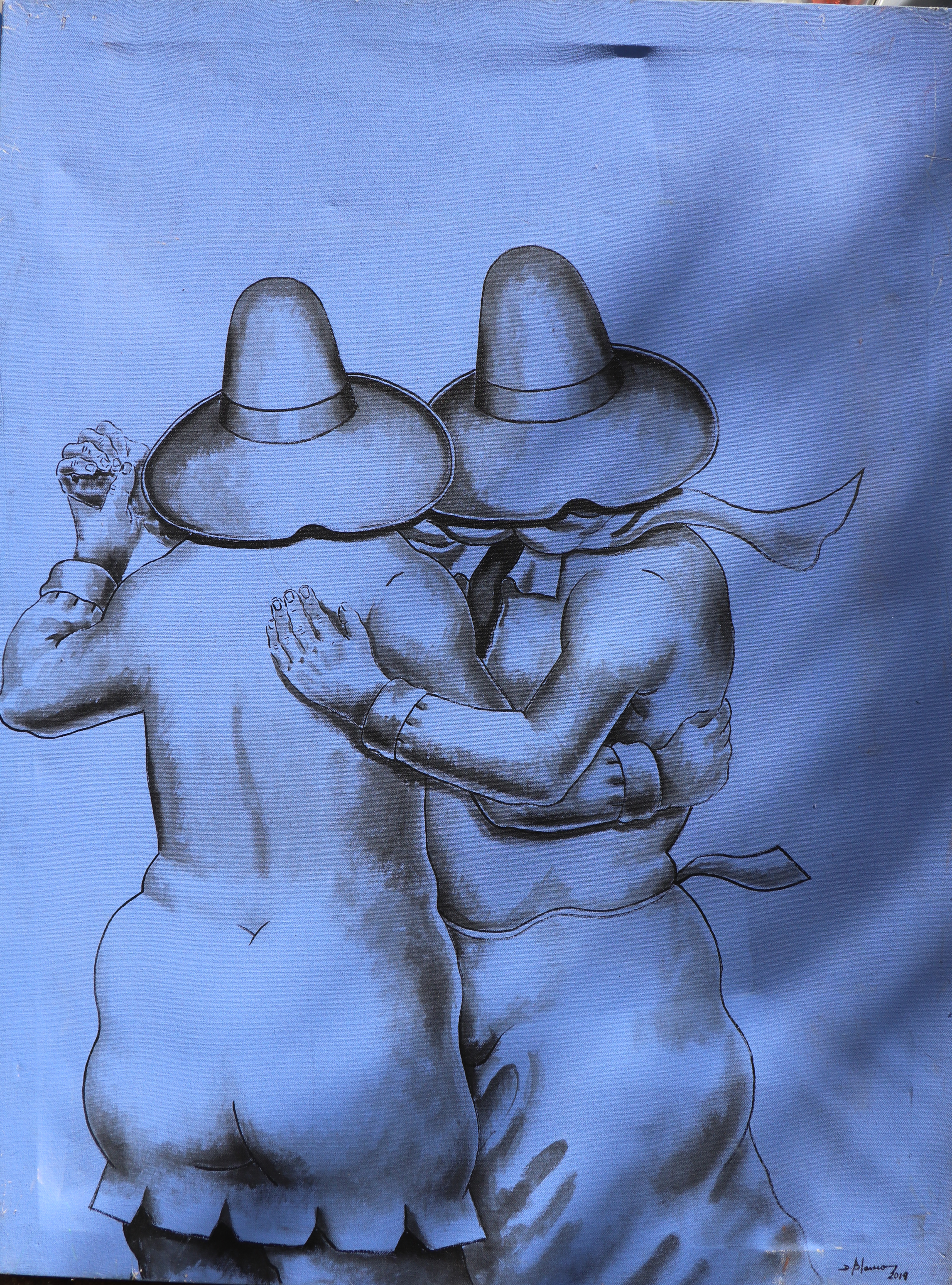 | Dionisio Blanco Untitled Sombreros en el Sonido de la Alegria 2019 Acrylic & Oil on canvas 30x40 in Signed LR |