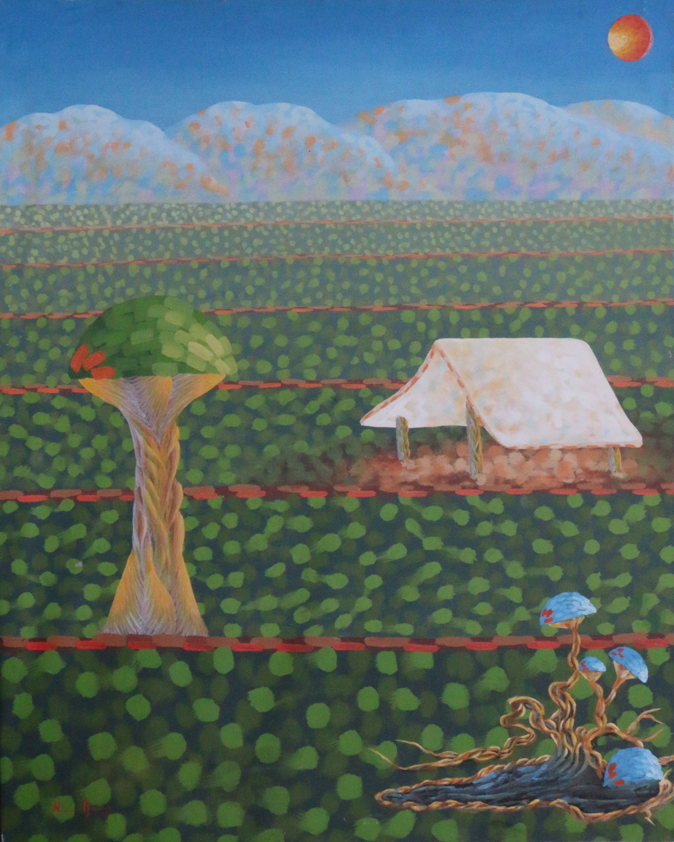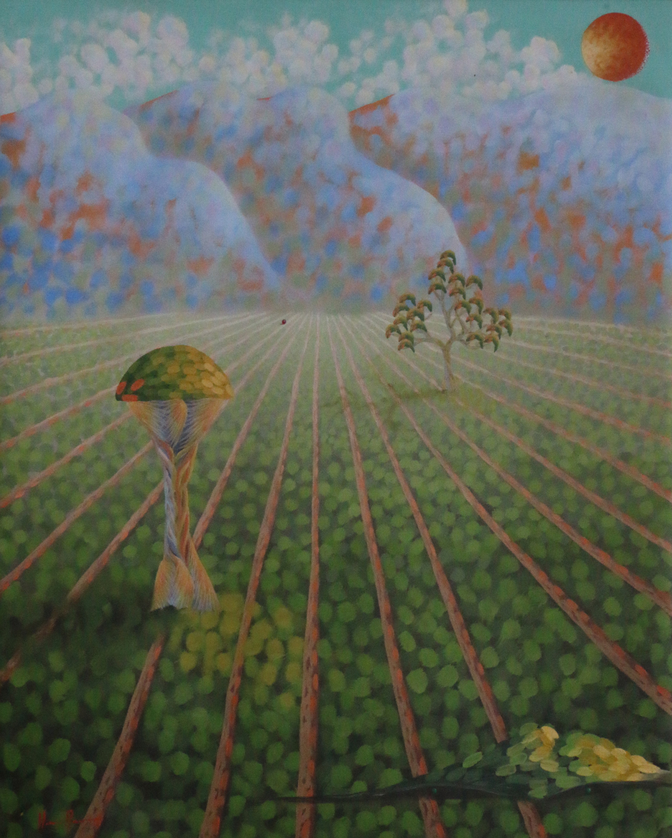 | Hector Reynoso Cosecha Gemela Cosecha (Harvest) 2019 Acrylic on canvas 40x50 in Signed LR |