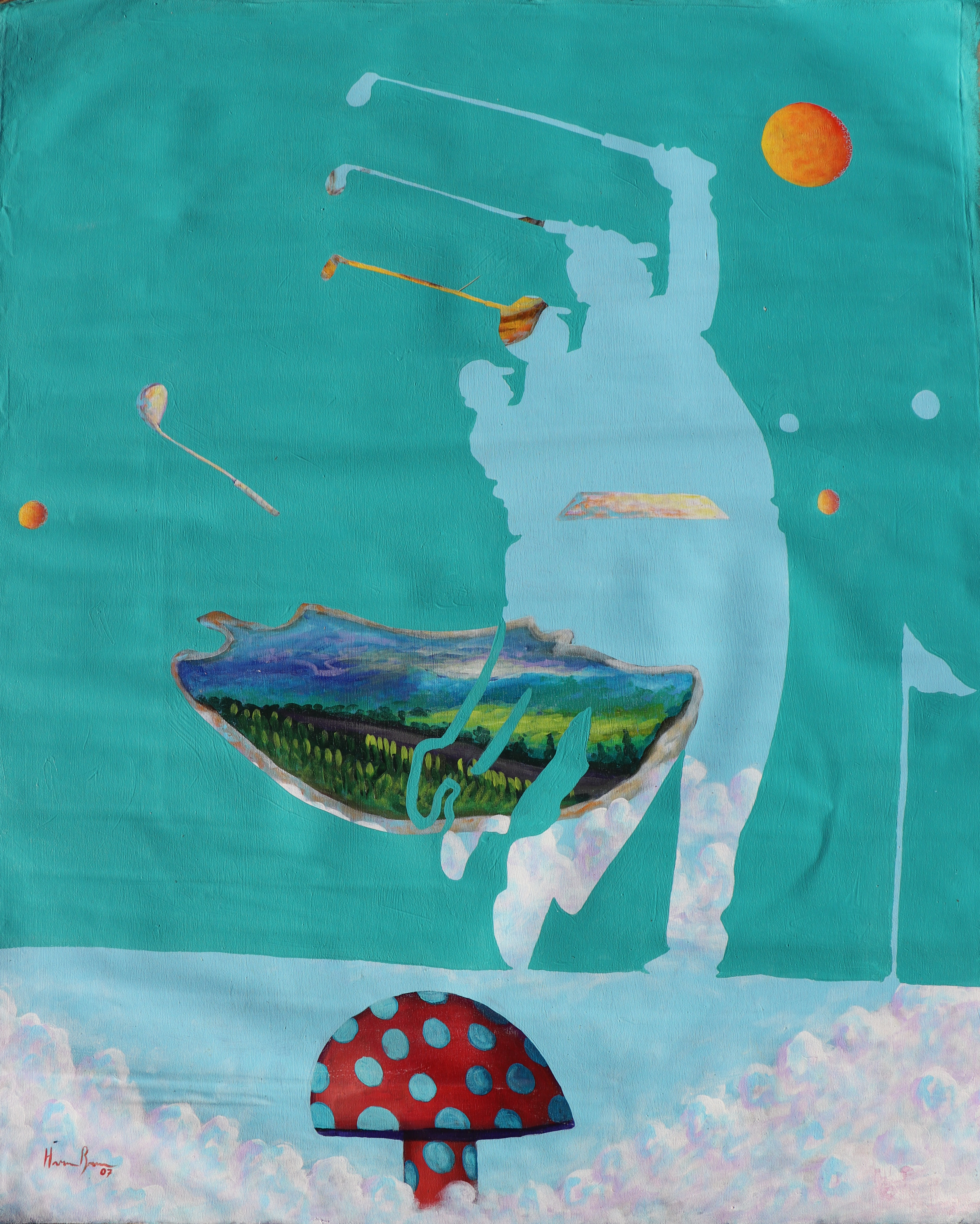 | Hector Reynoso Hoja de Golf Cosecha (Harvest) 2019 Acrylic on canvas 40x50 in Signed LR |