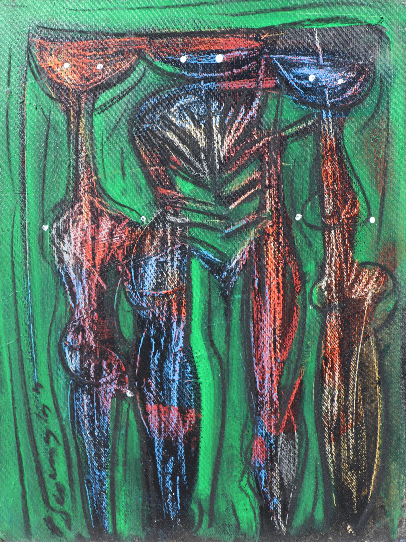 | Jesus Maria Desangles Untitled Fabula Caribe 2019 Mixed Media 24x18 in Signed LR |