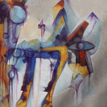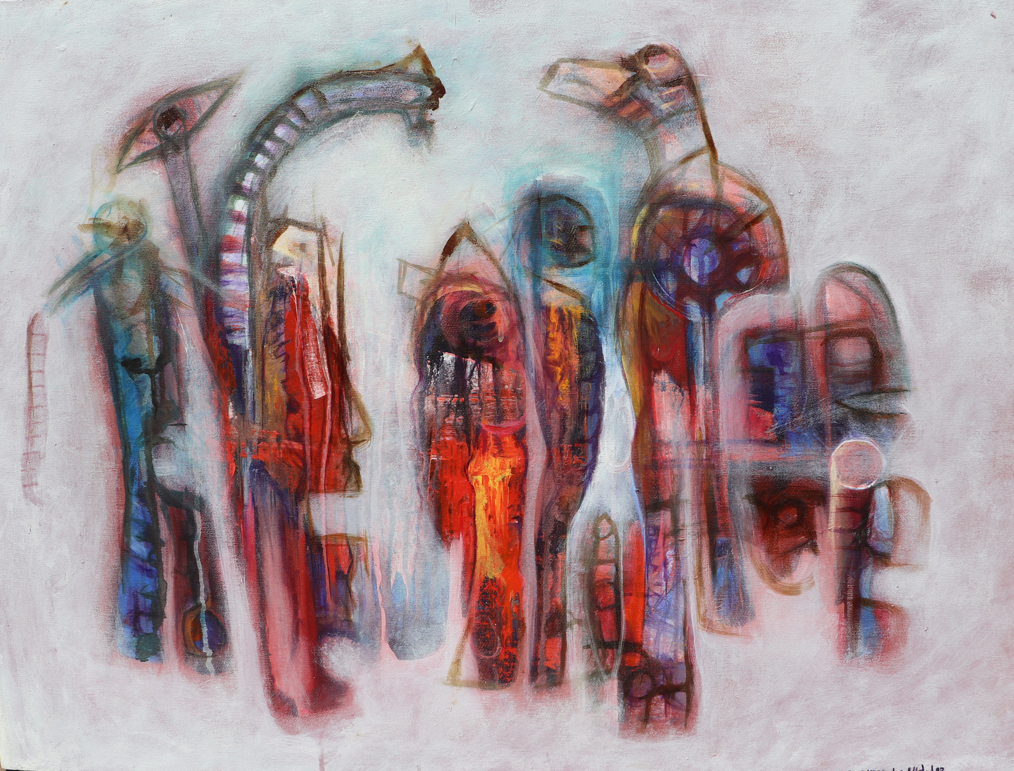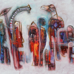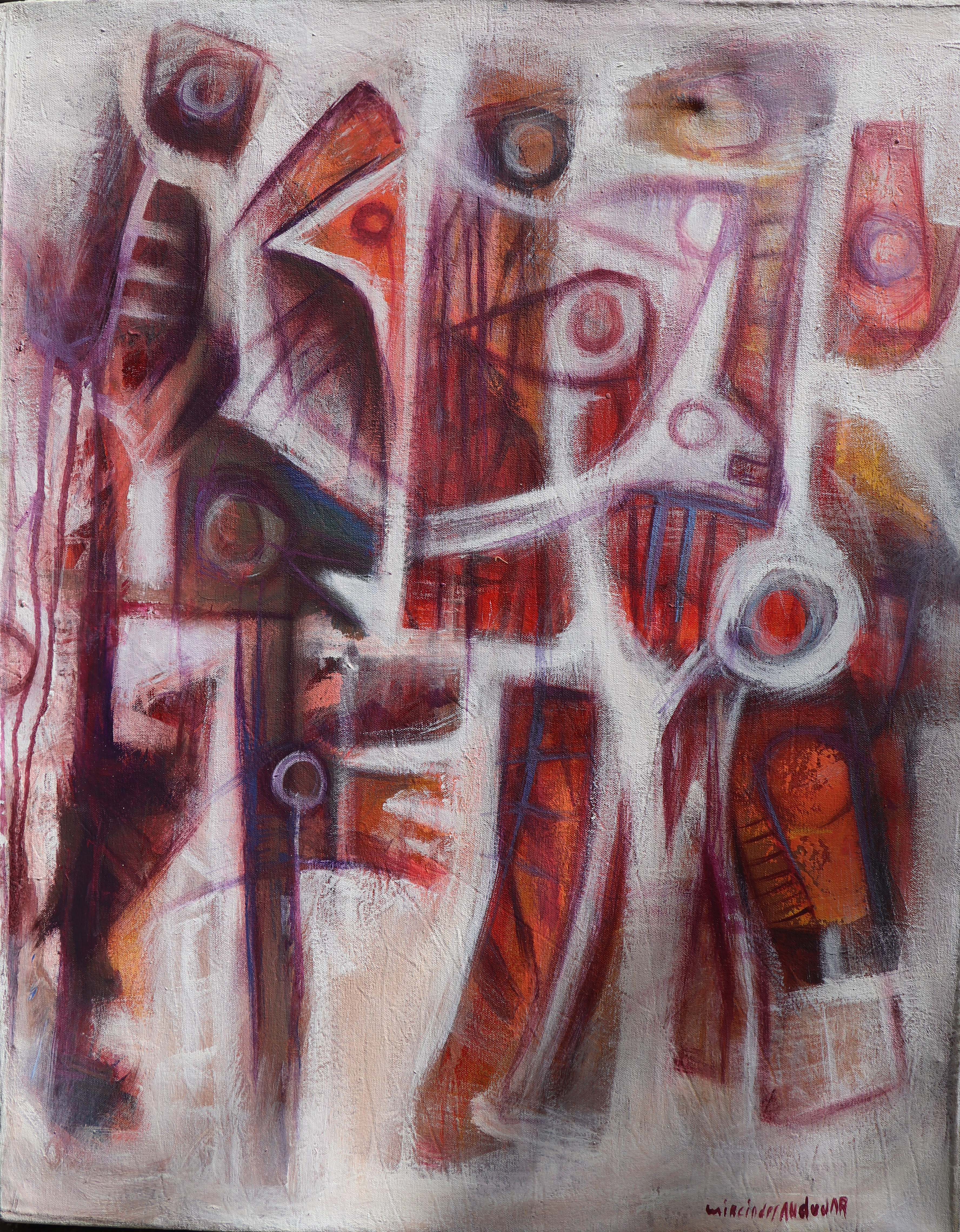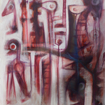 msar00008 | Mirciades Andújar Perros Mudos I Areito Taino 2019 Acrylic on canvas 23x29 in Signed LR |