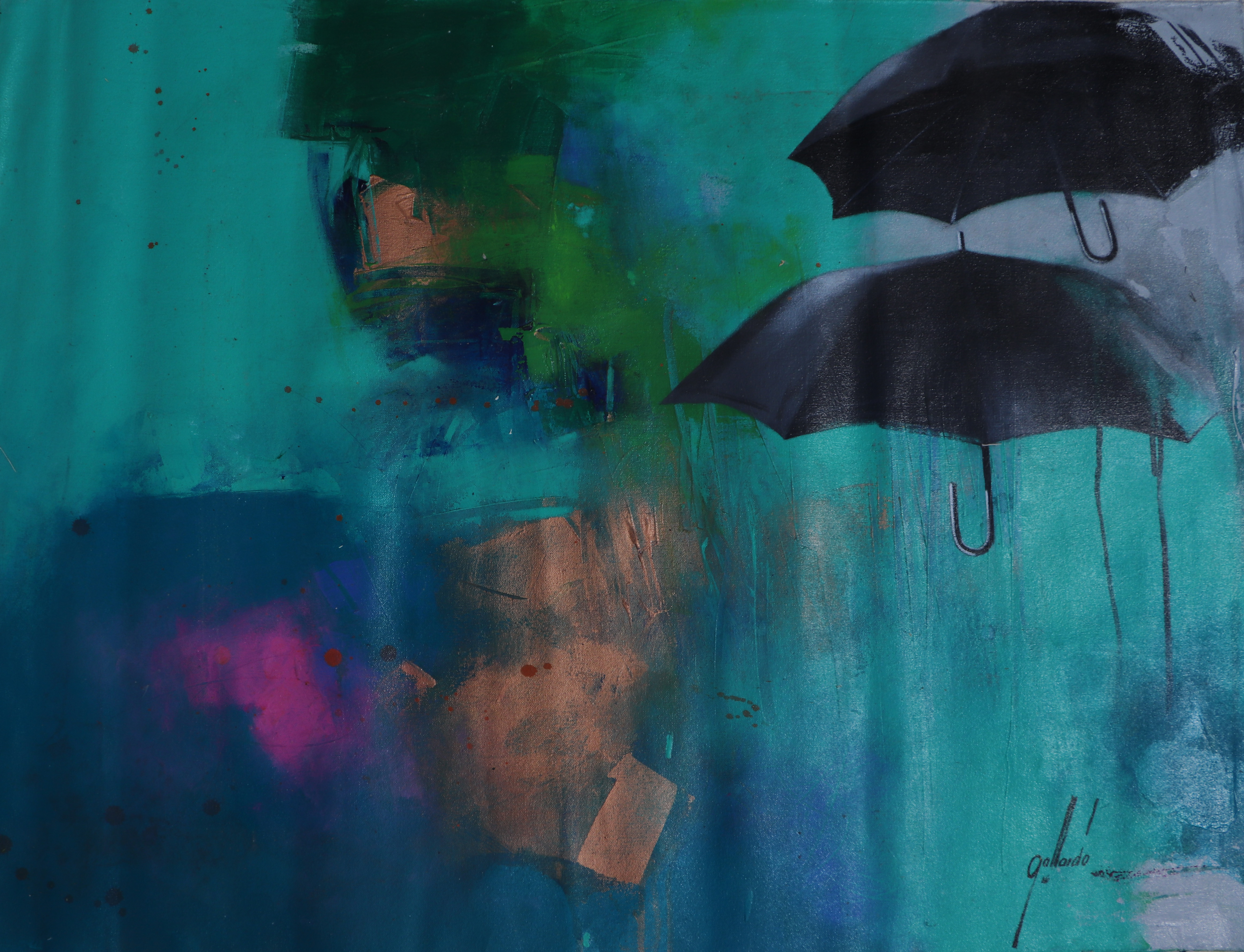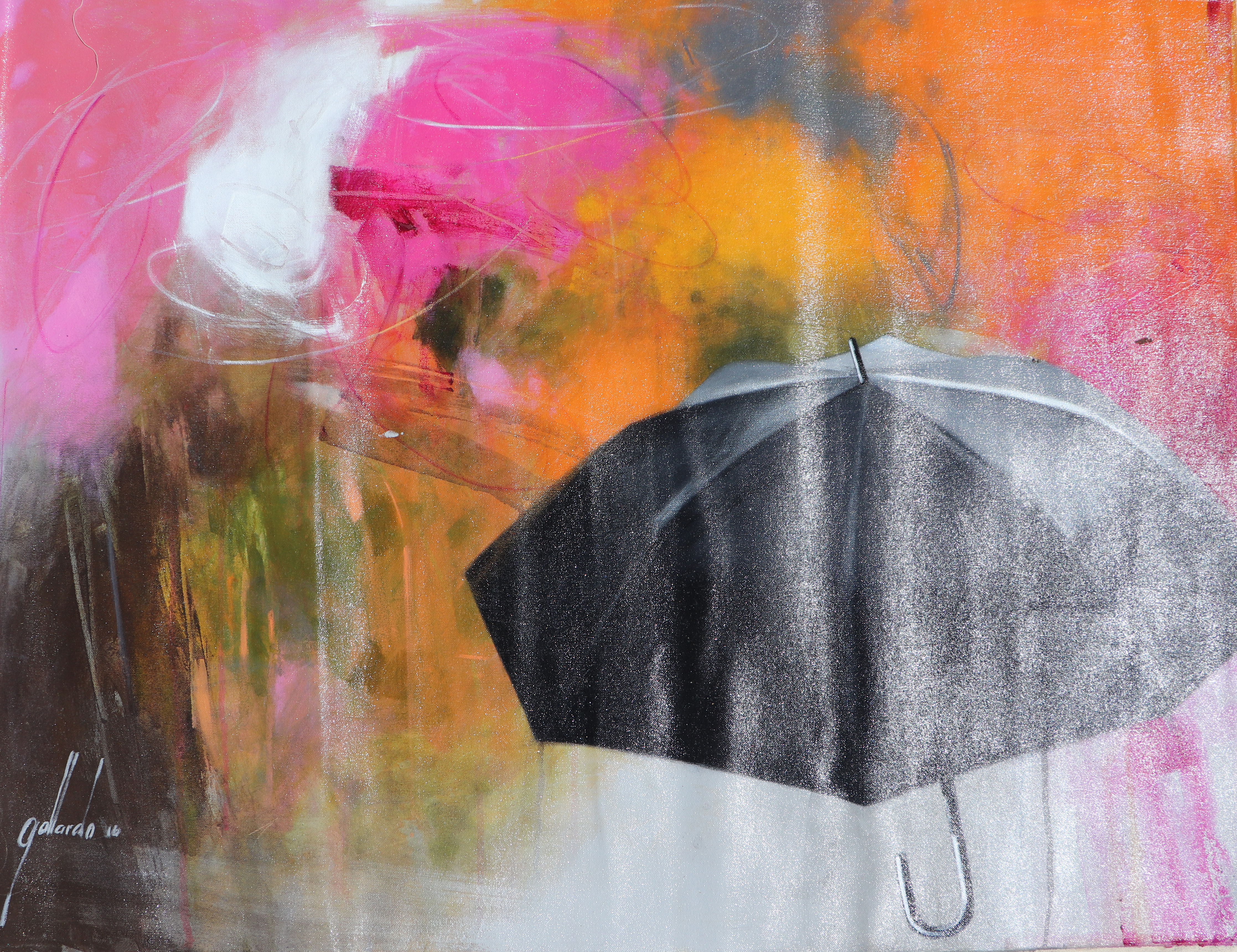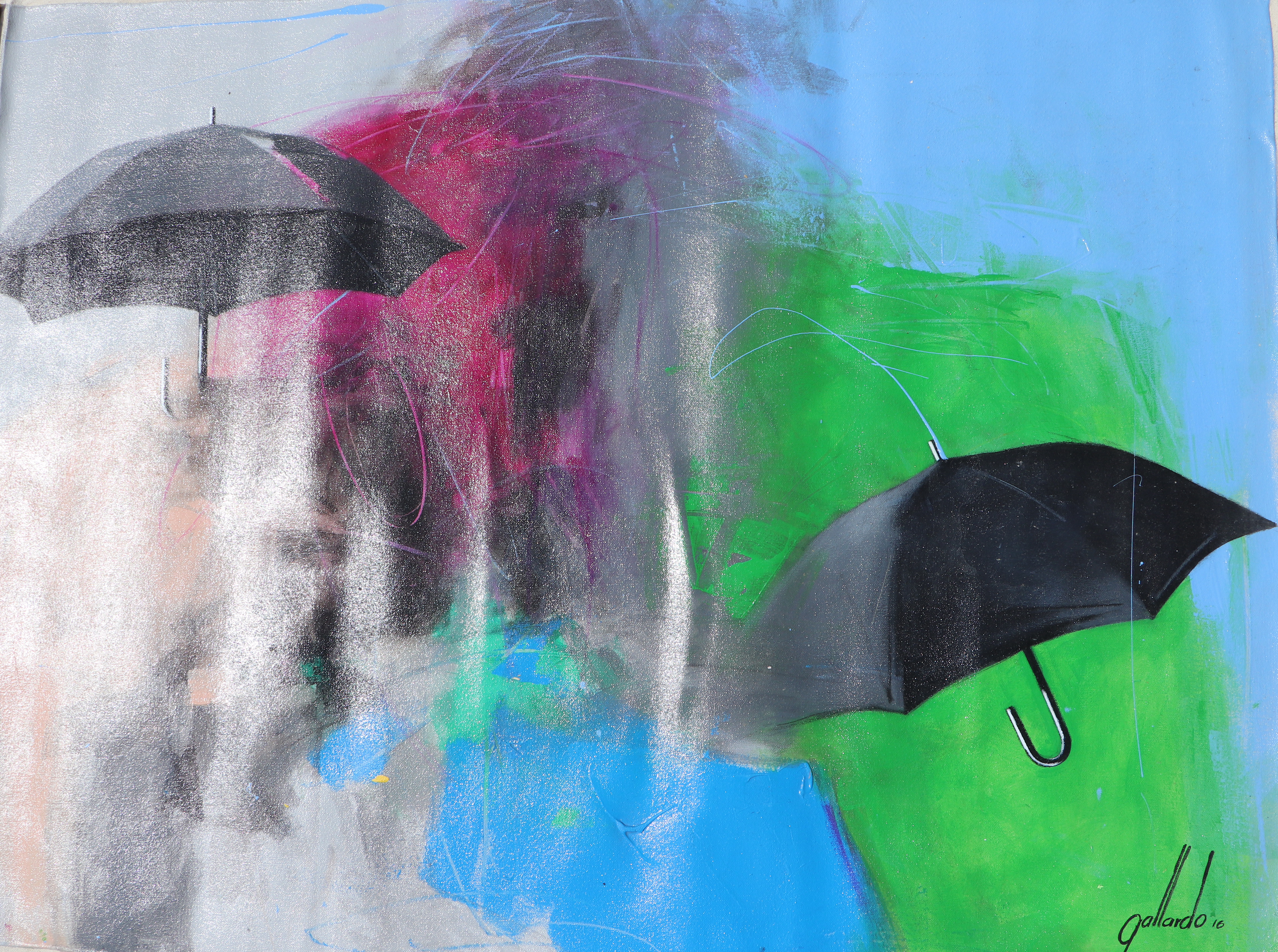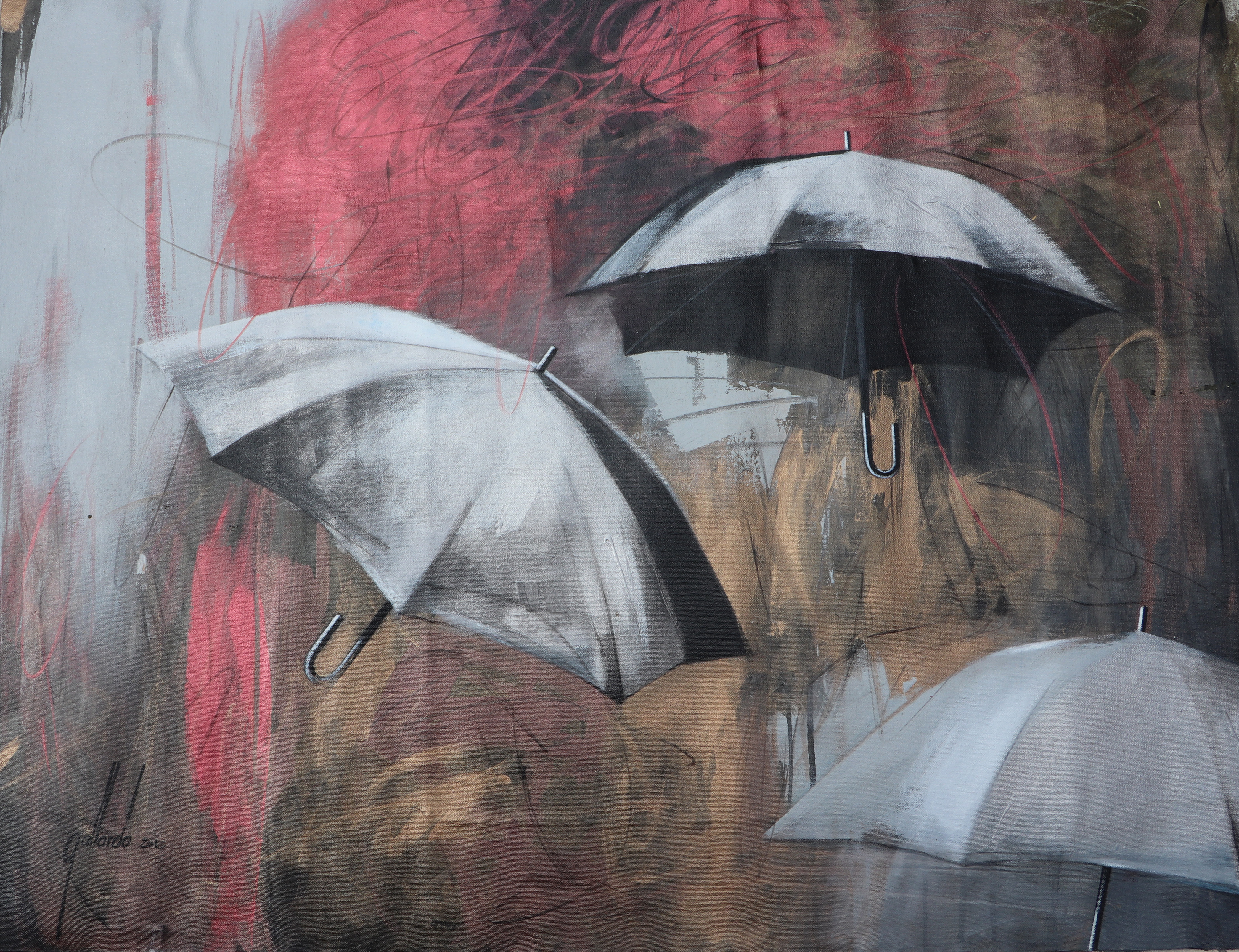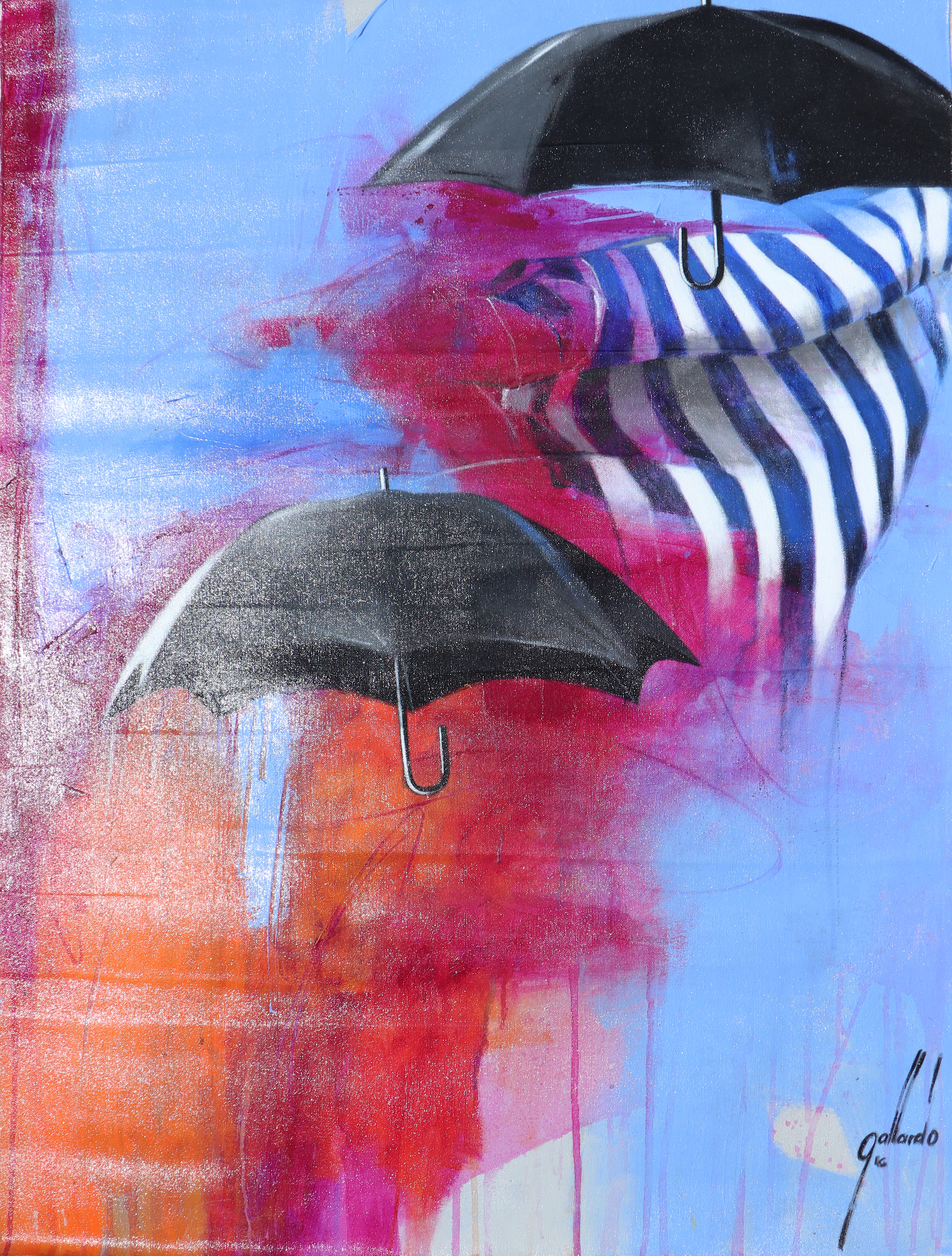 | Pedro Gallardo Untitled Umbrellas 2016 Acrylic on canvas 30x40 in Signed LL |